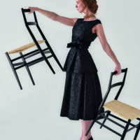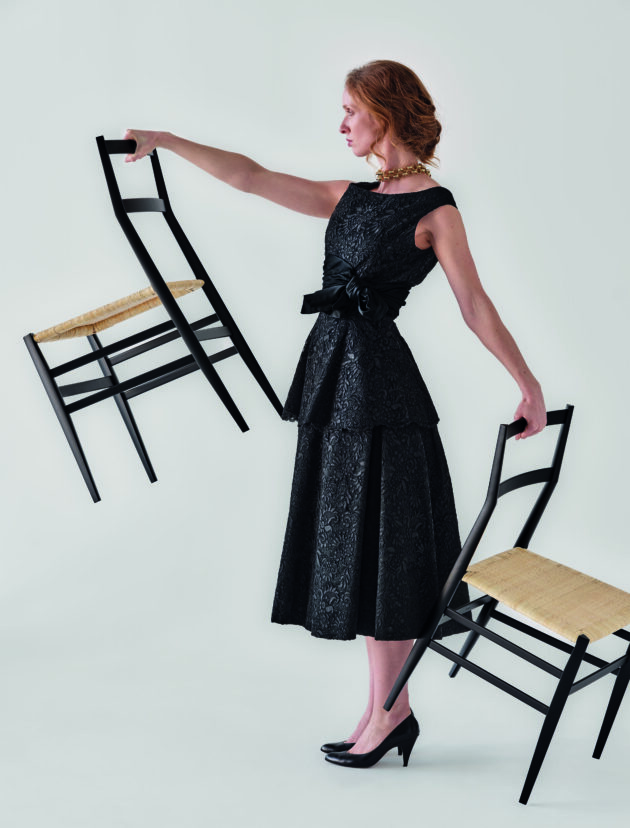 La mostra, impreziosita da dieci scatti d’autore realizzati dallo stesso Palomba che fanno da “soglia visiva” tra le epoche, si nutre di una contrapposizione temporale struggente. Gli abiti selezionati provengono dall’immenso archivio storico della Collezione Quinto Tinarelli, testimoni di stagioni passate, specchio di una moda che per sua natura è passeggera ed effimera. Il design, al contrario, costruisce la durata. Tutti i pezzi d’arredo esposti sono oggetti del passato che si trovano tuttora in produzione. “La poltrona della fine dell’Ottocento viene usata oggi nei nostri uffici o nelle nostre case”, riflettono i curatori. “I mobili si sono riaggiornati, mantenendo un’identità forte e senza tempo in un mondo che cambiava. Questa mostra è anche un modo per non disperdere la memoria storica della moda, restituendole quella dignità e quell’immortalità che il design possiede per statuto”, sottolinea Ludovica Serafini.