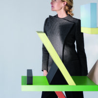 Il percorso espositivo si snoda per decadi, in un continuo, affascinante parallelismo formale e concettuale. Negli anni Quaranta, per esempio, l’abito si “apre”, svelando il corpo con scollature e spaccature che liberano la fisicità dall’umiliazione del nascondimento. Un’apertura che si specchia perfettamente nel Modernismo di Le Corbusier o Charlotte Perriand, che “aprono” le strutture degli edifici e degli arredi, portando all’esterno lo scheletro strutturale e abbracciando un’estetica orgogliosamente antidecorativa. Si arriva poi agli anni Novanta, l’era della geometrizzazione e dell’iconizzazione: “Le giacche destrutturate ma geometriche di Giorgio Armani trasformano in chiave totemica la figura della donna, dialogando a distanza con le gerarchie geometriche che Ettore Sottsass imprimeva in opere come la libreria Carlton”, spiegano i due architetti.
